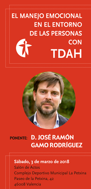 Bajo el título "El manejo emocional en el entorno de las personas con TDAH" el ponente José Ramón Gamo Rodriguéz nos hablará sobre como identificar y entender las emociones, técnicas de manejo, y las atribuciones y el riesgo de una autoimagen destructiva en el TDAH