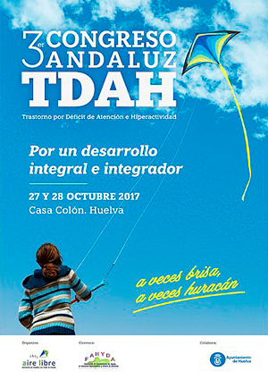 Convocado por la Federación Andaluza FAHYDA y organizado por Aire Libre, Asociación de Familias con TDAH de Huelva, los próximos días 27 y 28 de octubre de 2017 tendrá lugar el III Congreso Andaluz sobre TDAH, se celebará en el Palacio de Congresos Casa Colón, Huelva.